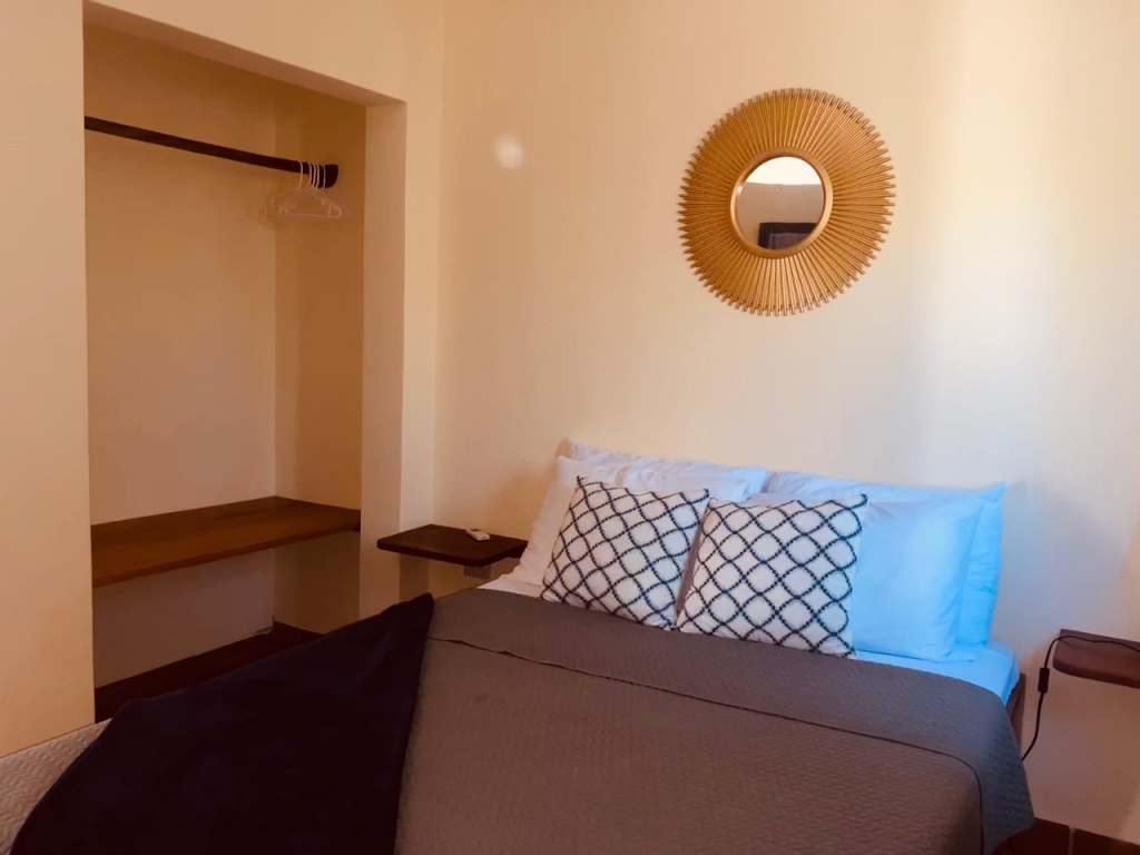 They have a bedroom, a living room with a double sofa bed, a private bathroom and a mini kitchen.