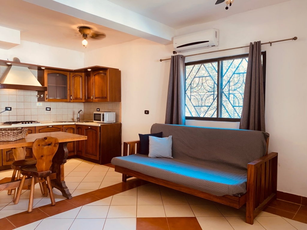 They have a kitchen, 1.5 bathrooms, walk in closet, living room with a double sofa bed and a dining room with an independent terrace.