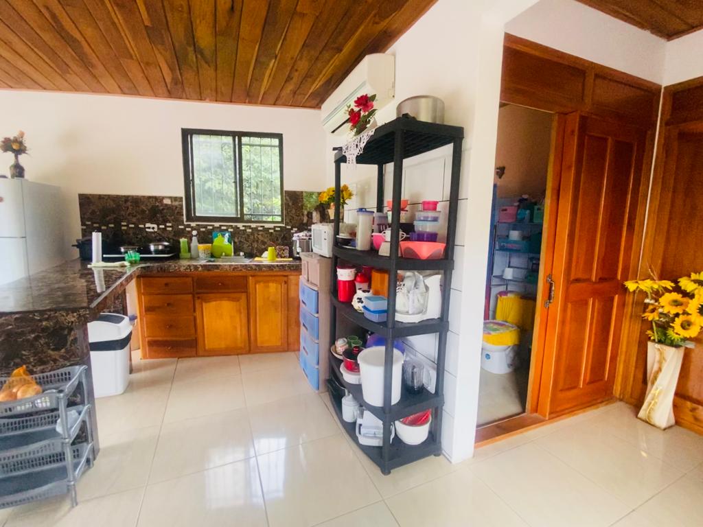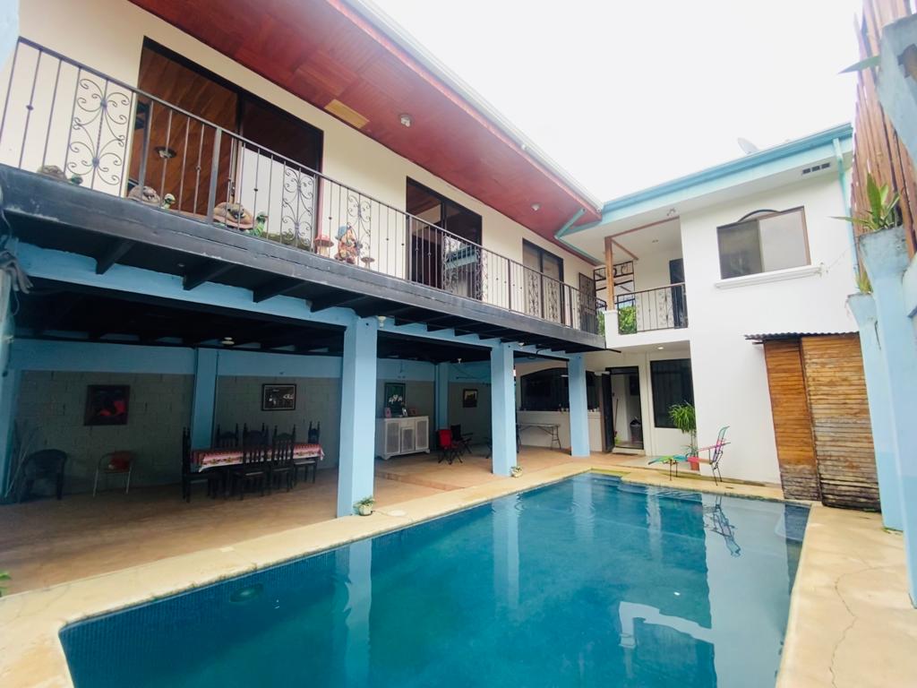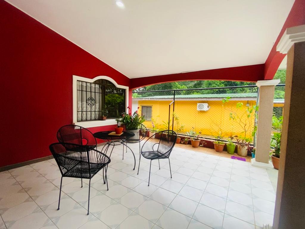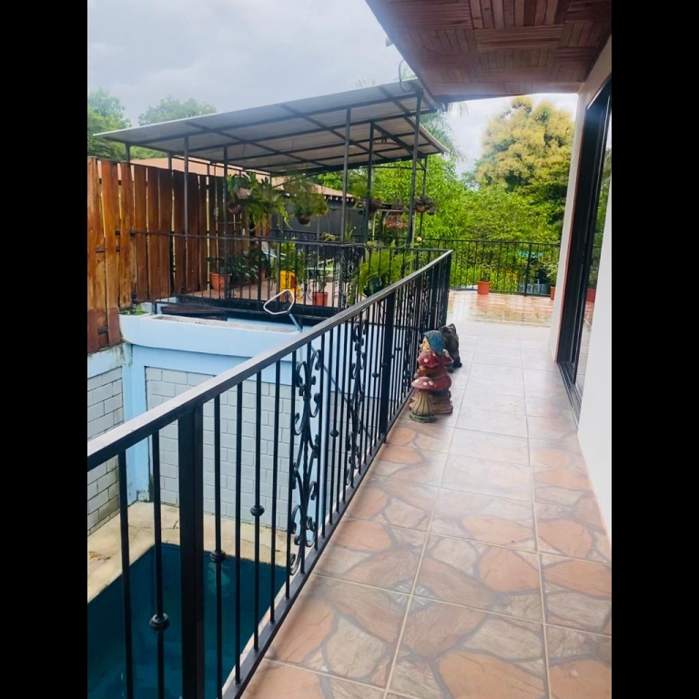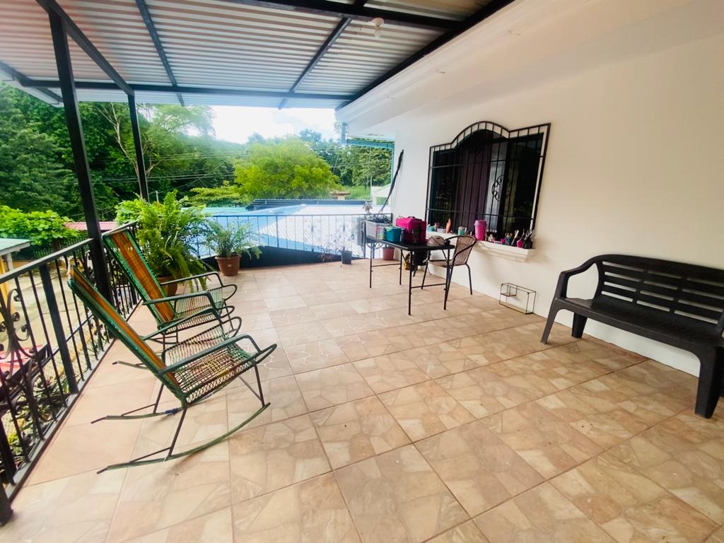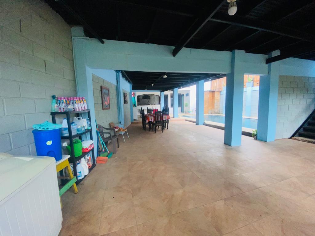 The main house has 2 bedrooms, a large living room, kitchen, dining room, terrace, parking inside the property and a covered terrace facing the pool.
