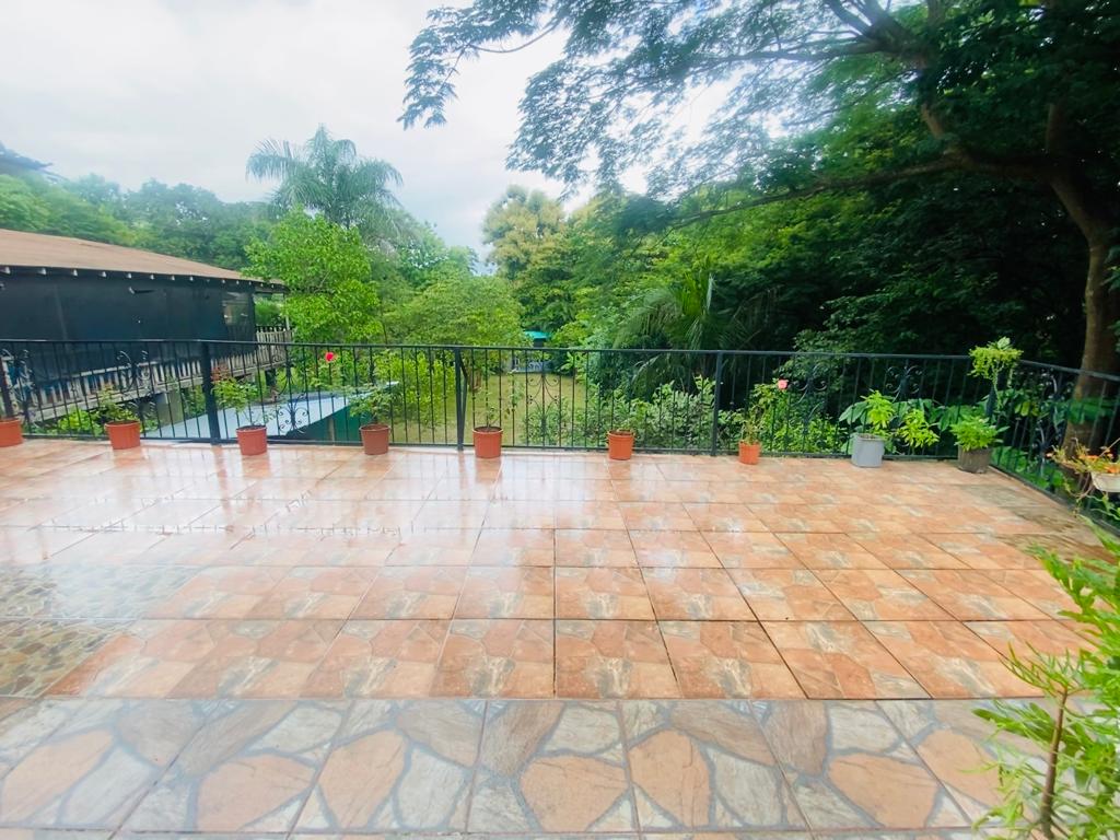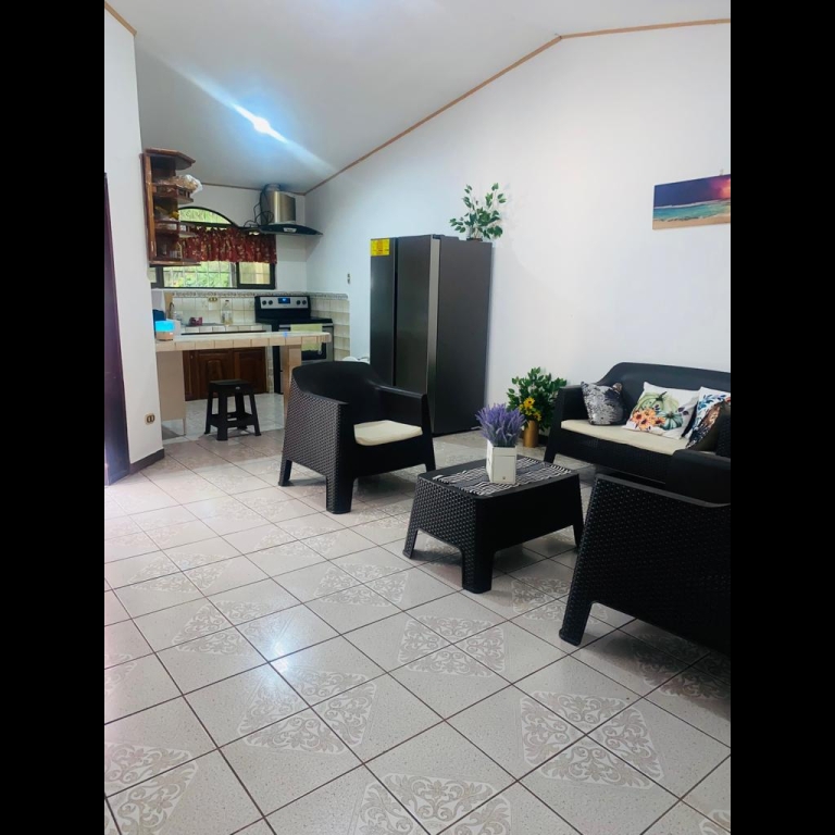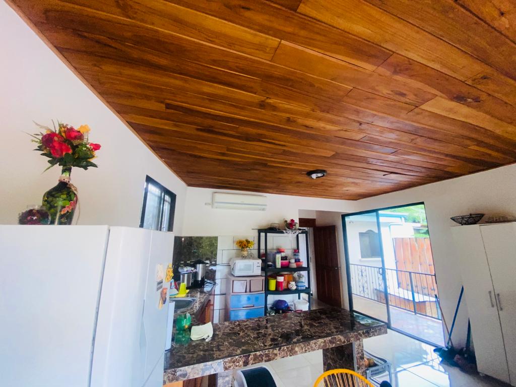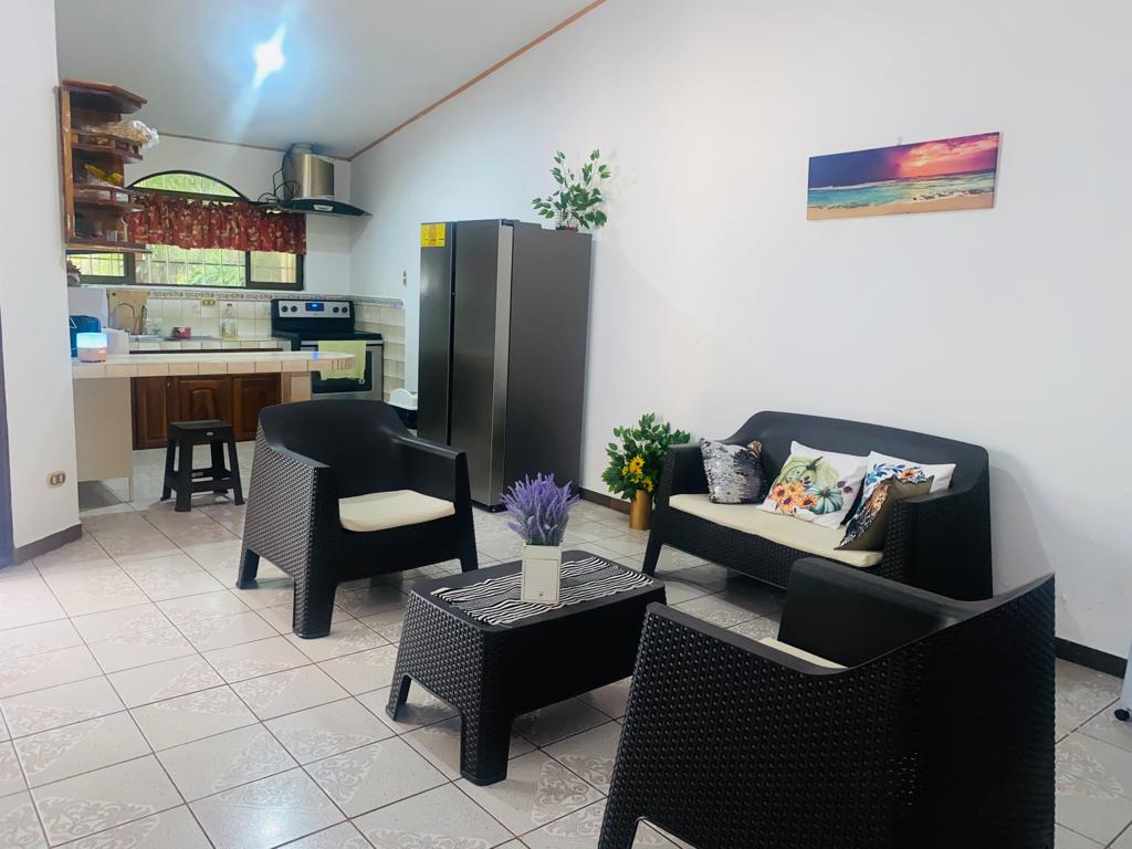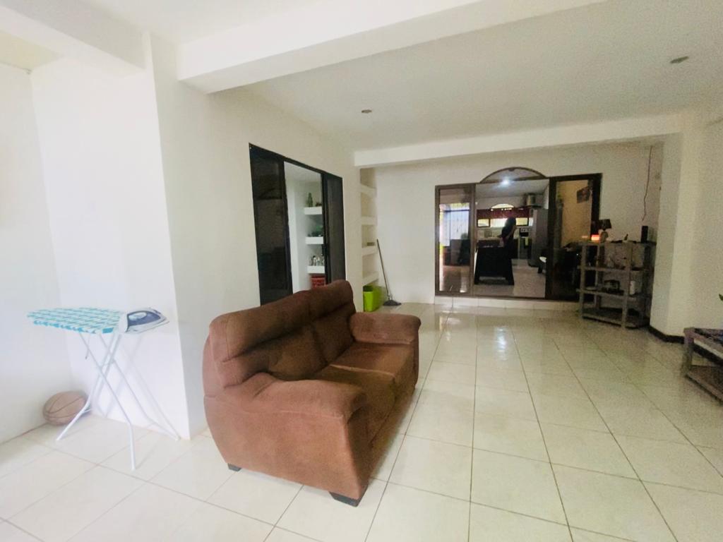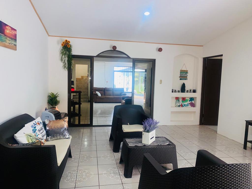 The main house has 2 bedrooms, a large living room, kitchen, dining room, terrace, parking inside the property and a covered terrace facing the pool.