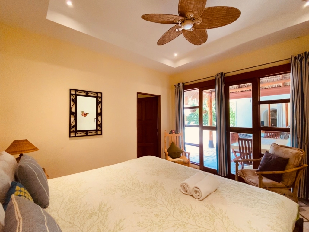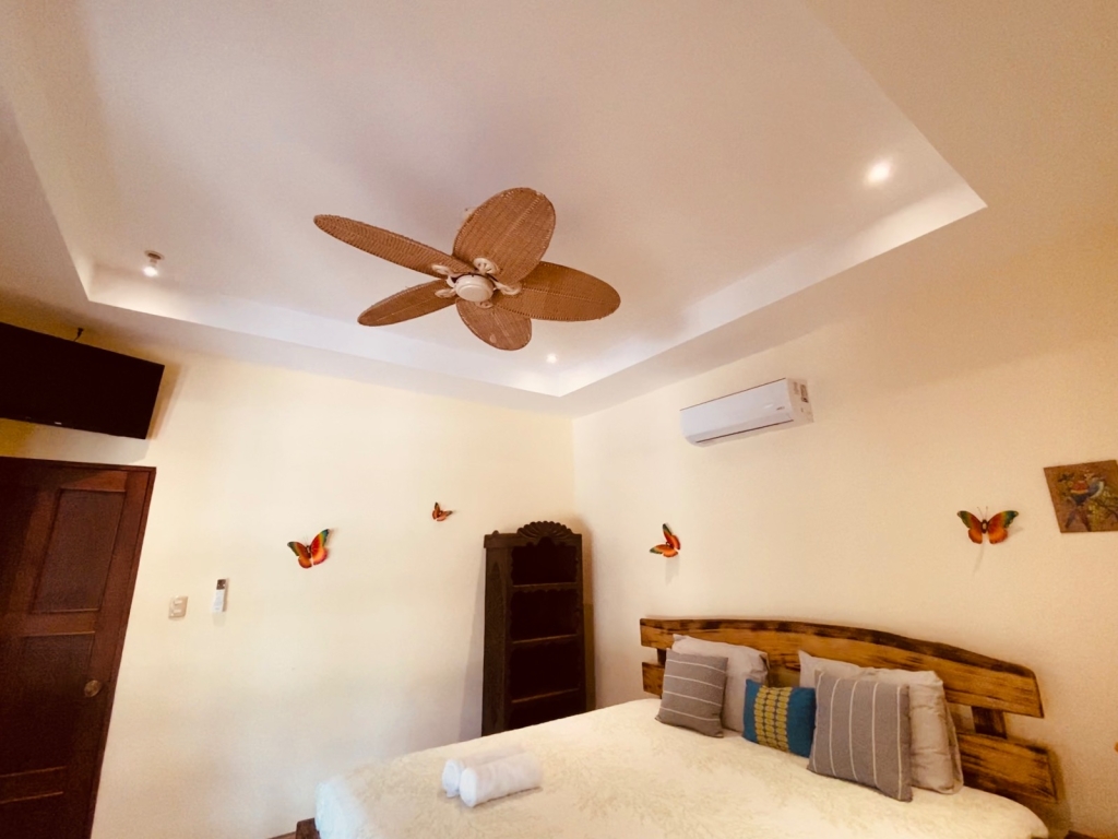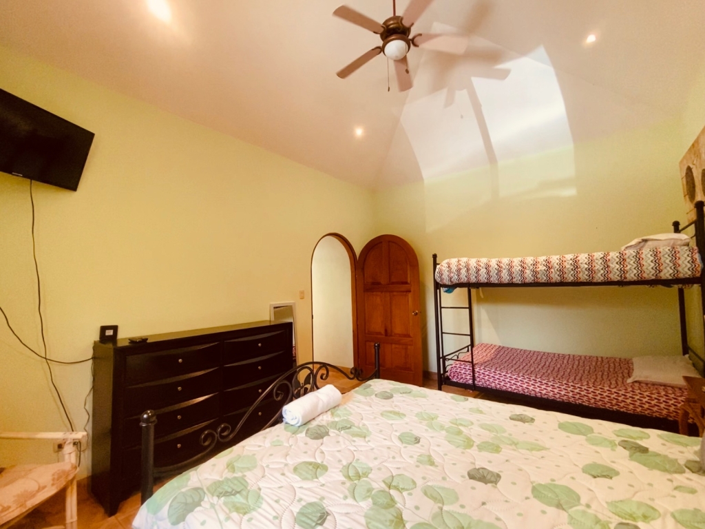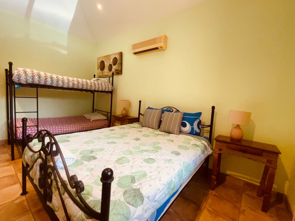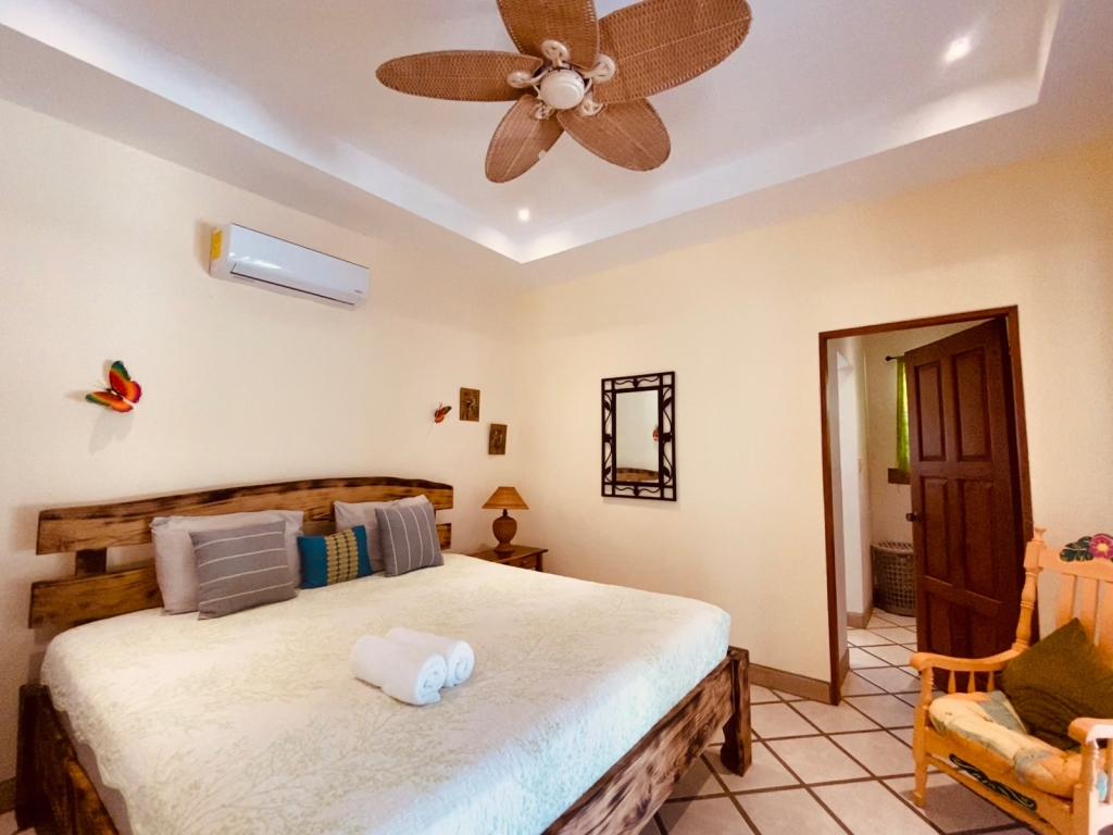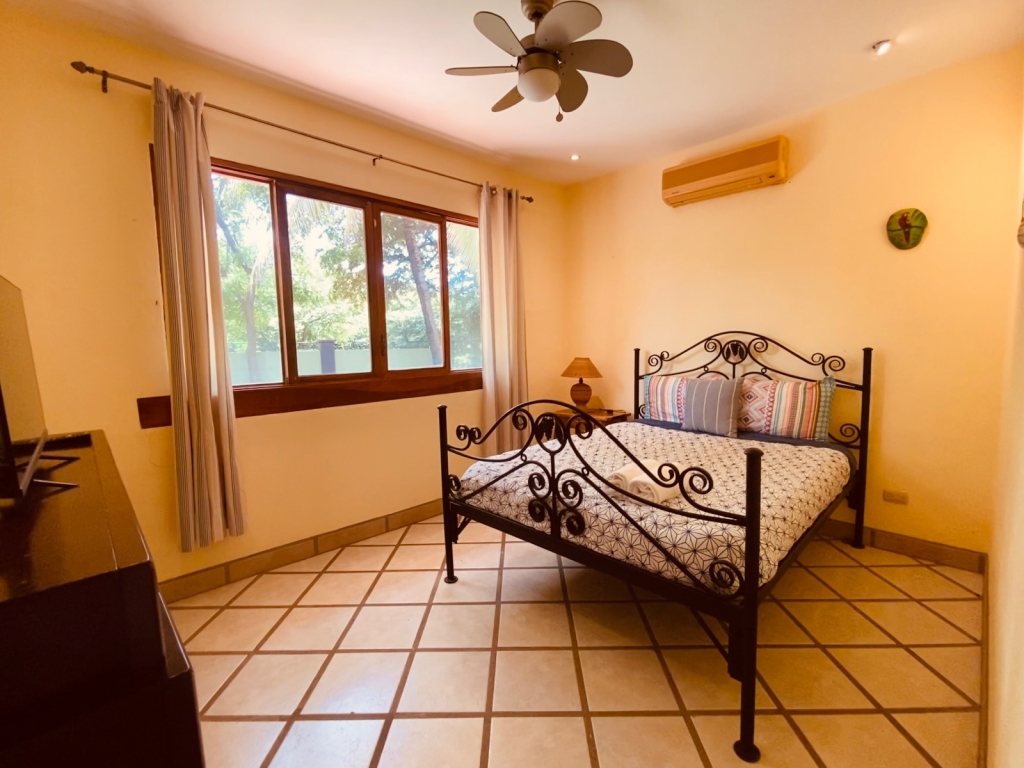El dormitorio principal contiene una cama king size, el segundo dormitorio cama queen y el tercer dormitorio una cama queen y una litera de dos camas individuales, con hermosos muebles y decoración tropical. Los baños tienen bellos acabados de piedra, lo cual los hace únicos.