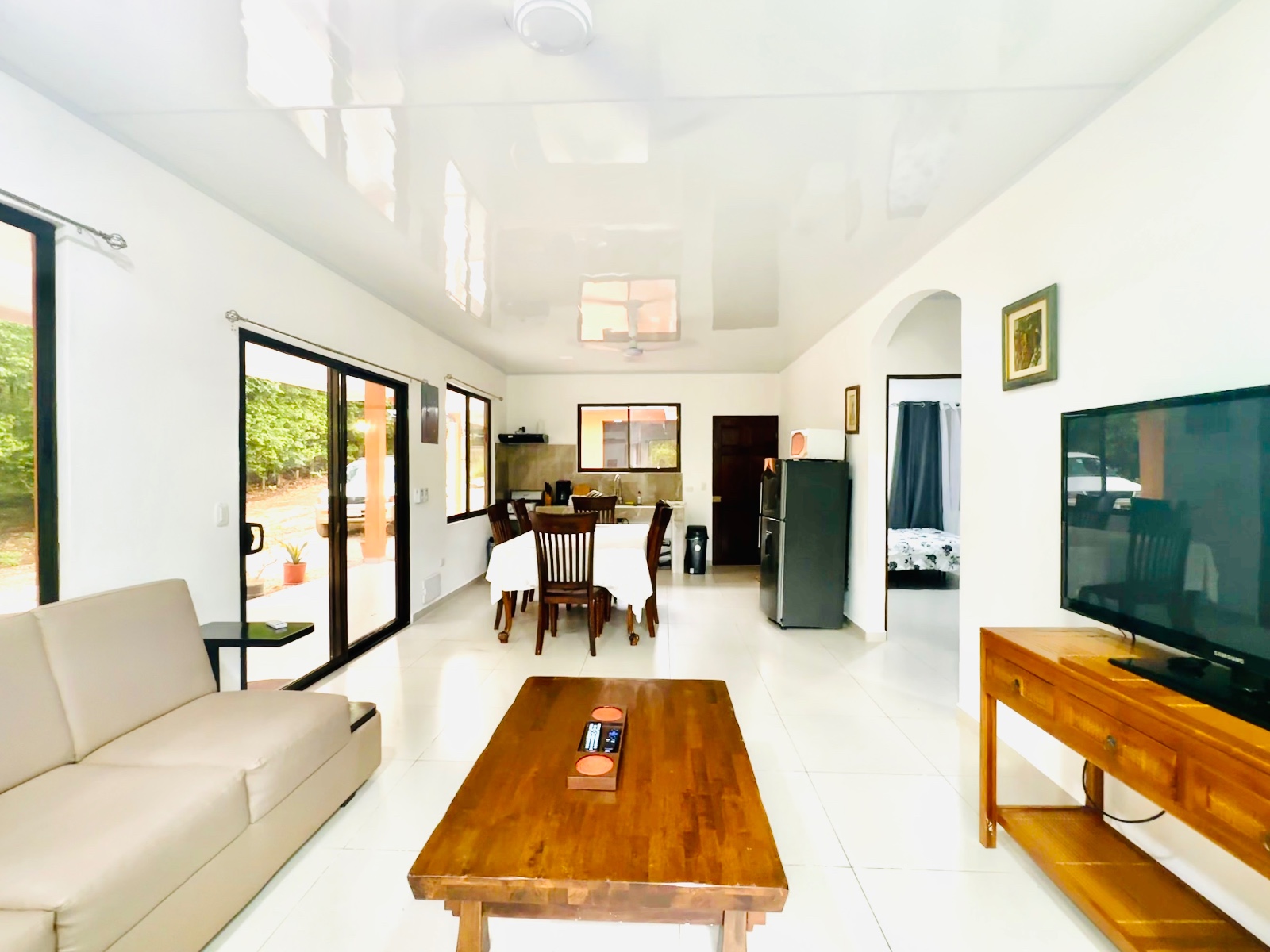 Esta casa y unidades se ofrecen completamente amobladas, además poseen amplios ventanales y puertas corredizas, con acabados de finas maderas y bases con hermosos diseños, que proporcionan un ambiente tranquilo en el interior.