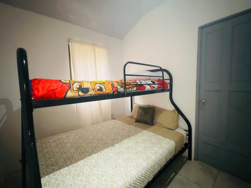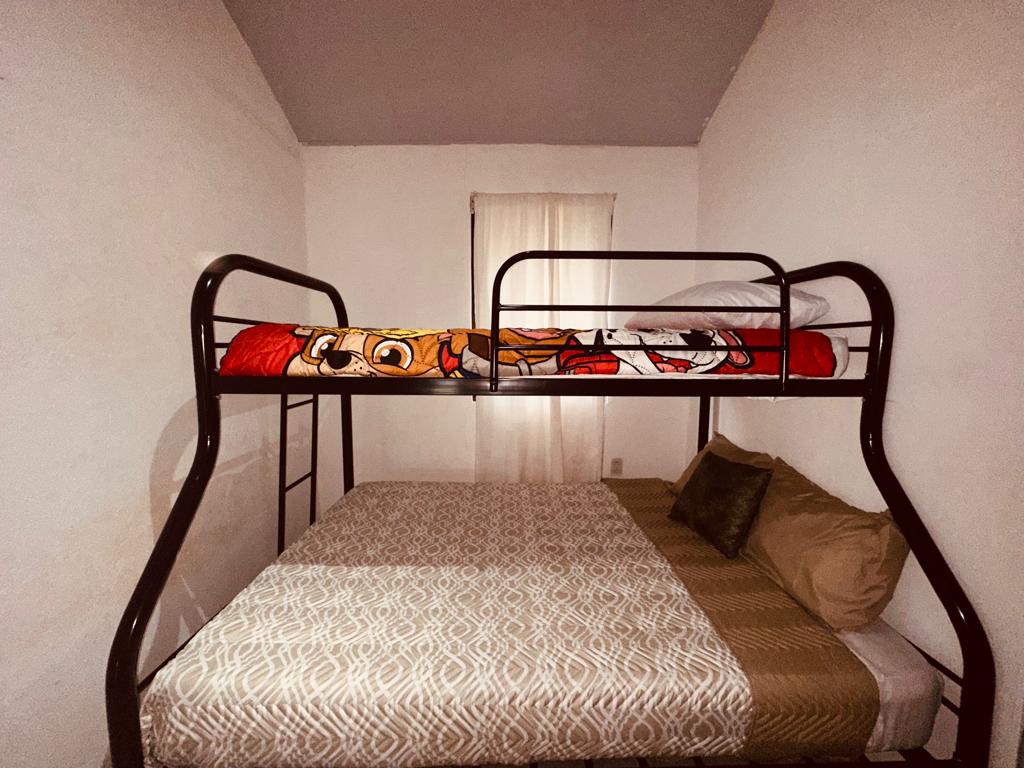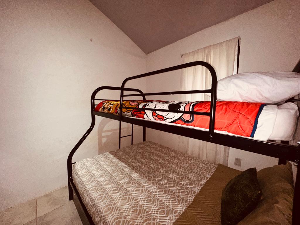 House #3: It has two bedrooms with a common full bathroom, air conditioning, living room, kitchen, dining room and covered parking.