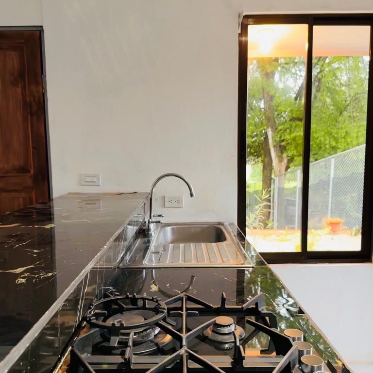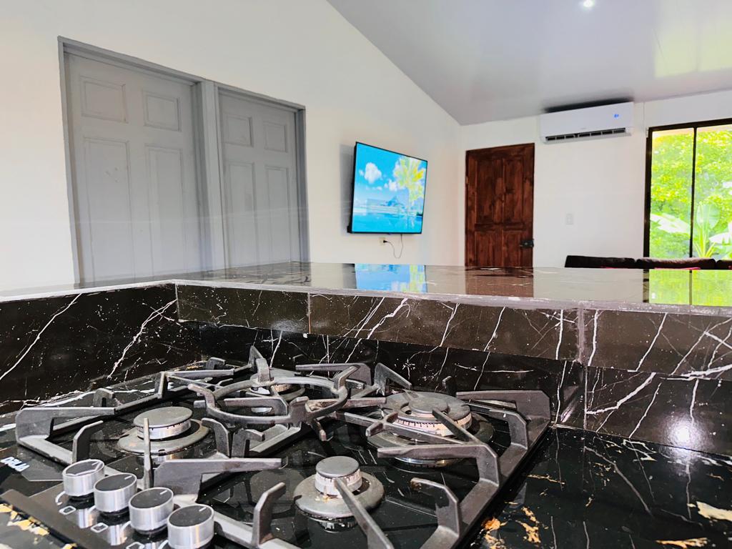 It has a lot of 1225 m2 and a construction distributed as follows: the main house is located independently on approximately 500 m2 of land and measures 120 m2 of construction and the other 3 houses are located in a lot of approximately 727 m2 , two of them with two bedrooms and one is a studio, independent from each other. The land is wide, it has mango trees, cas and others, in addition the property is completely closed with mesh and a sliding gate with very easy access from Playa Grande, Flamingo, Huacas and Tamarindo (4 entrances).