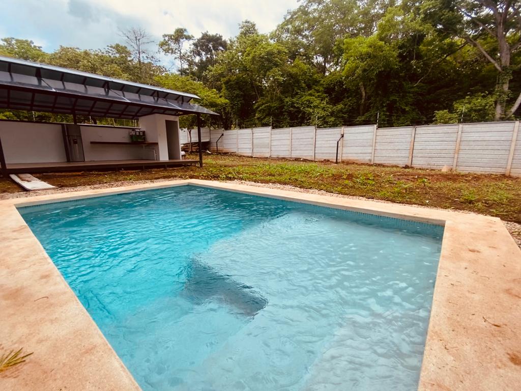 Tiene 3 dormitorios, aire acondicionado, ventiladores, está totalmente equipado y es muy fresco. La piscina es completamente privada y en frente tiene una hermosa terraza de madera.