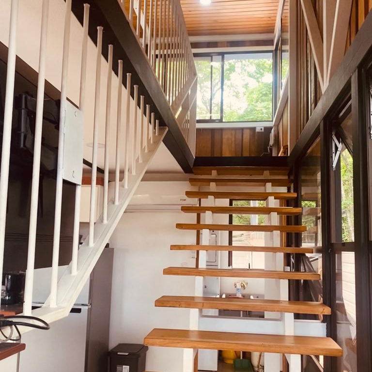 La casa está ubicada de tal manera que las ventanas ofrecen una vista espectacular de las copas de los árboles, es completamente nueva, en dos plantas y tiene acabados modernos.