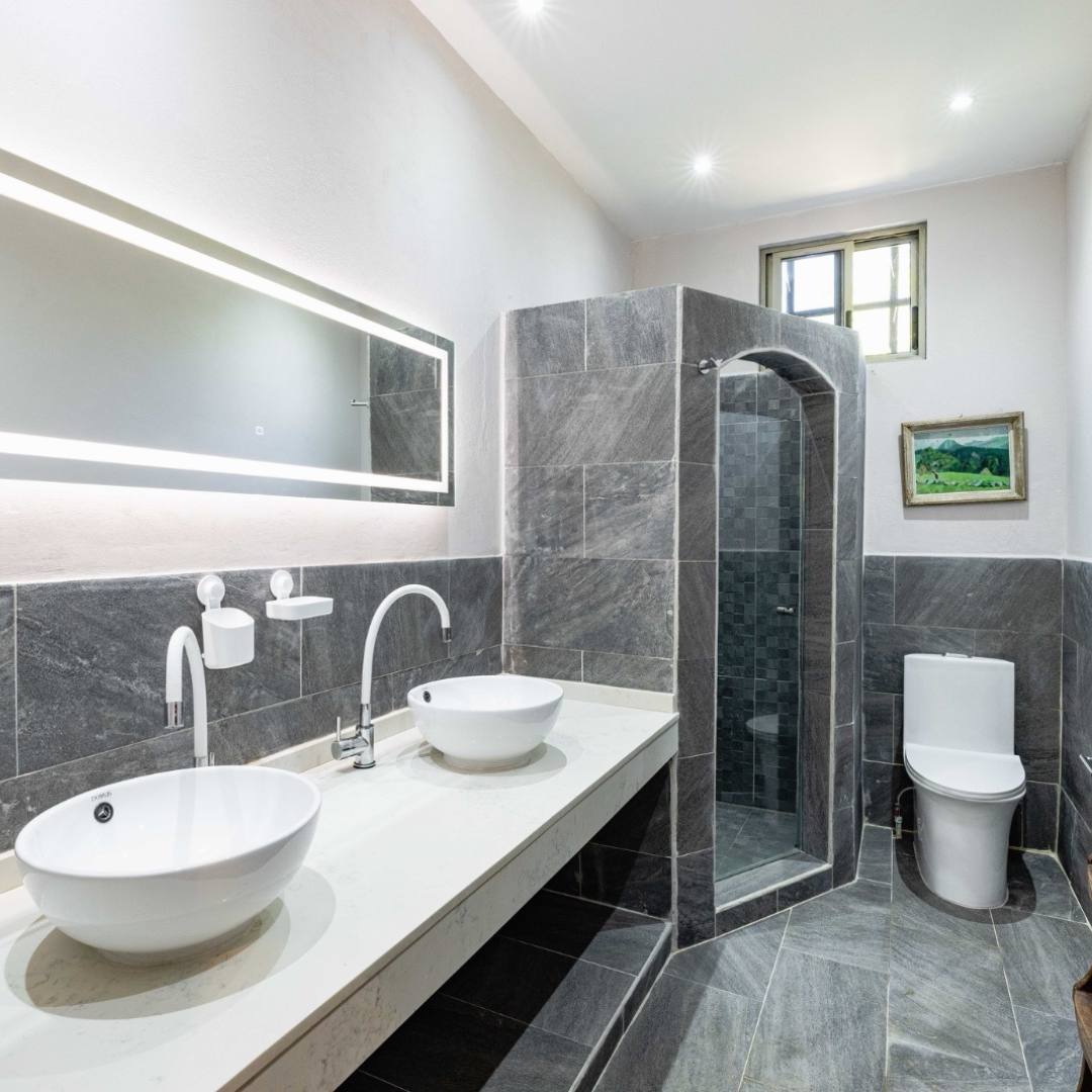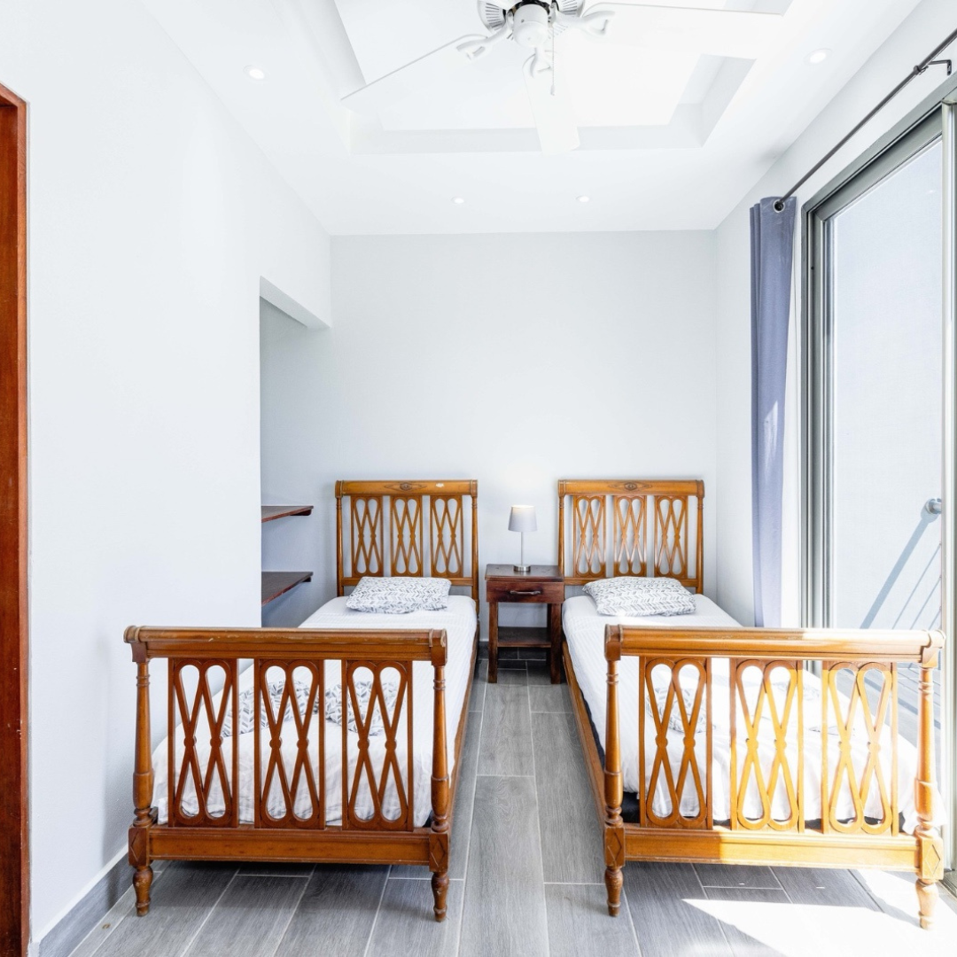 Second floor: 2 bedrooms with private bathrooms and balcony