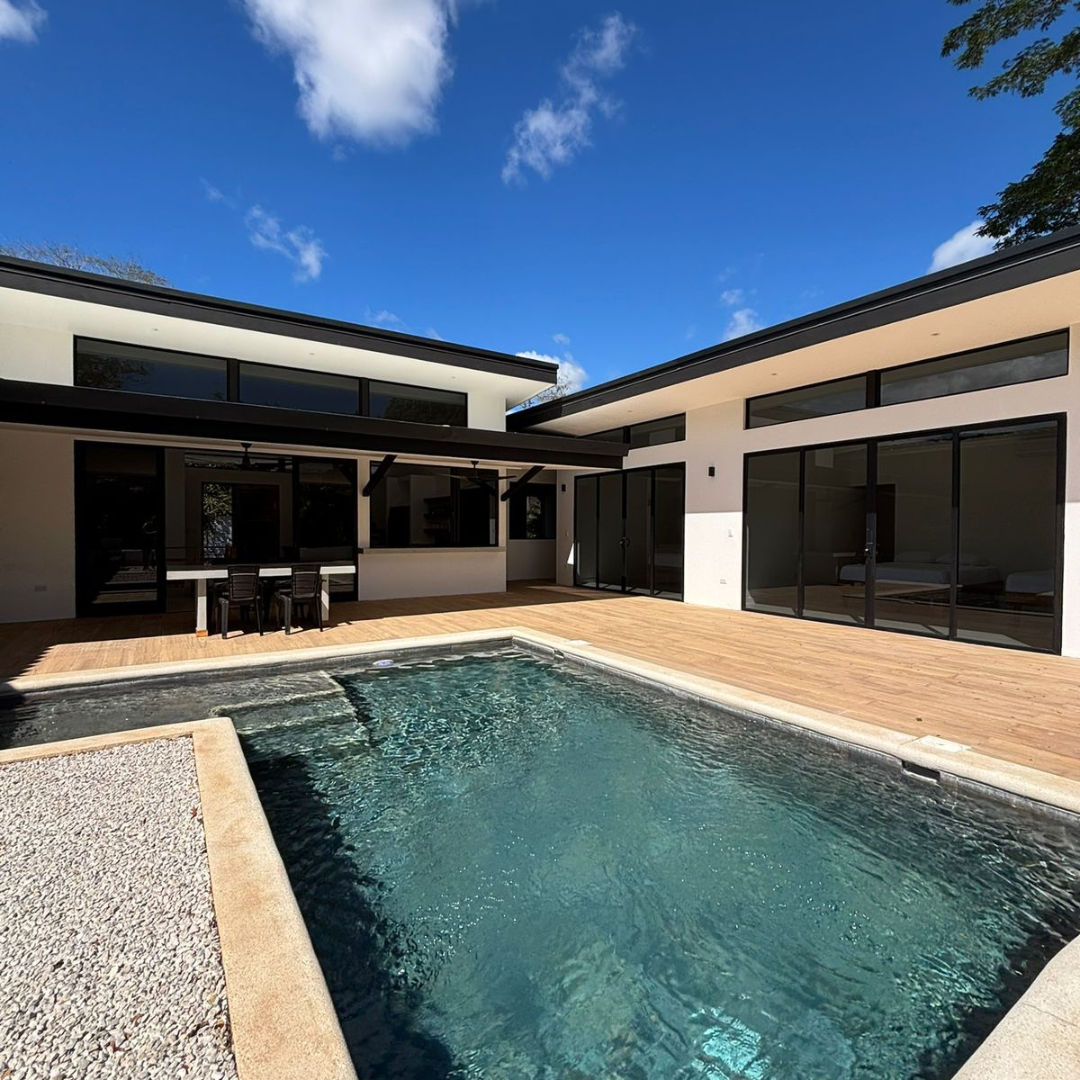 • All bedrooms feature large glass doors/windows facing and opening toward the pool