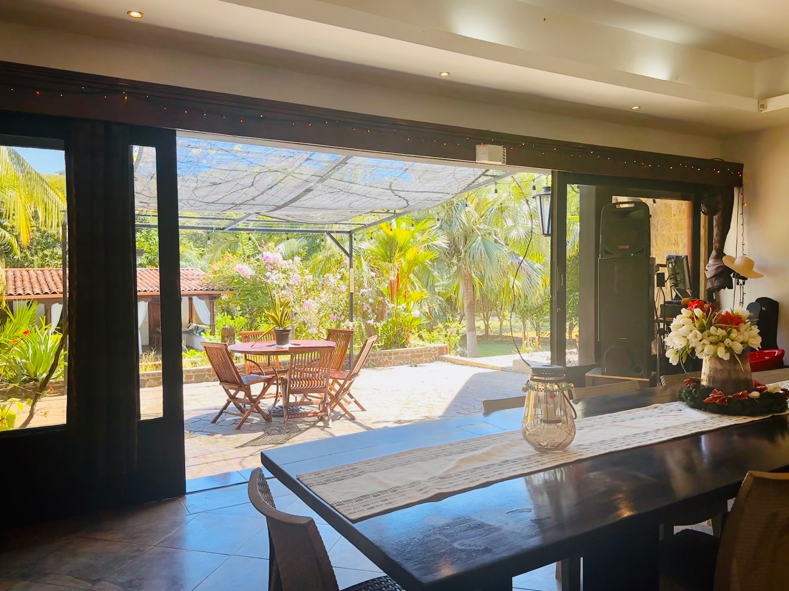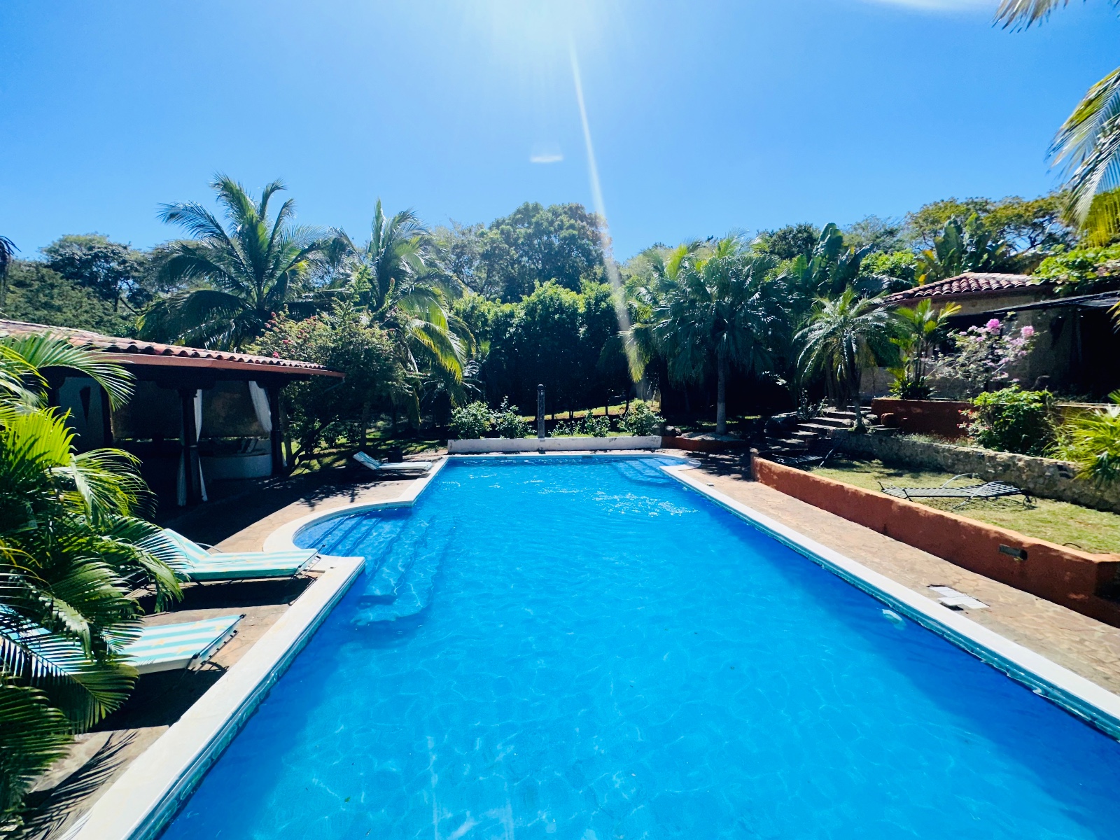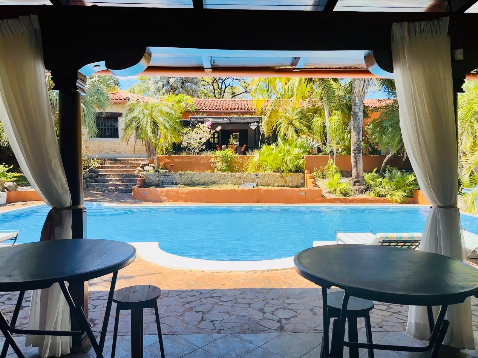 - Main house: 3 bedrooms, 3.5 bathrooms with kitchen, TV room and a charming dining room with access to the terrace. On the main floor, there is a nice pool and outdoor lounging area.