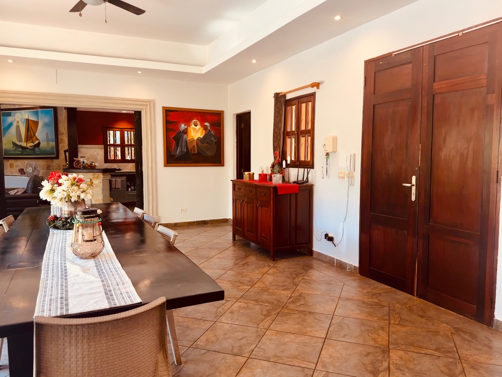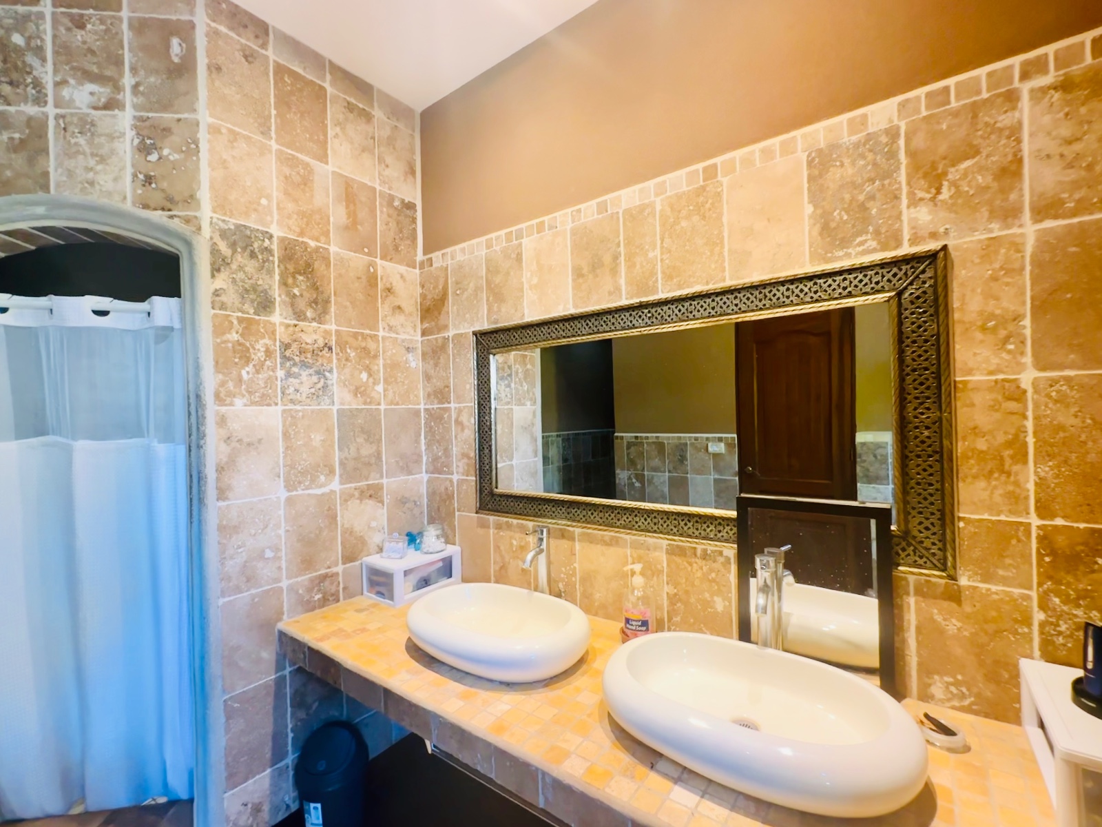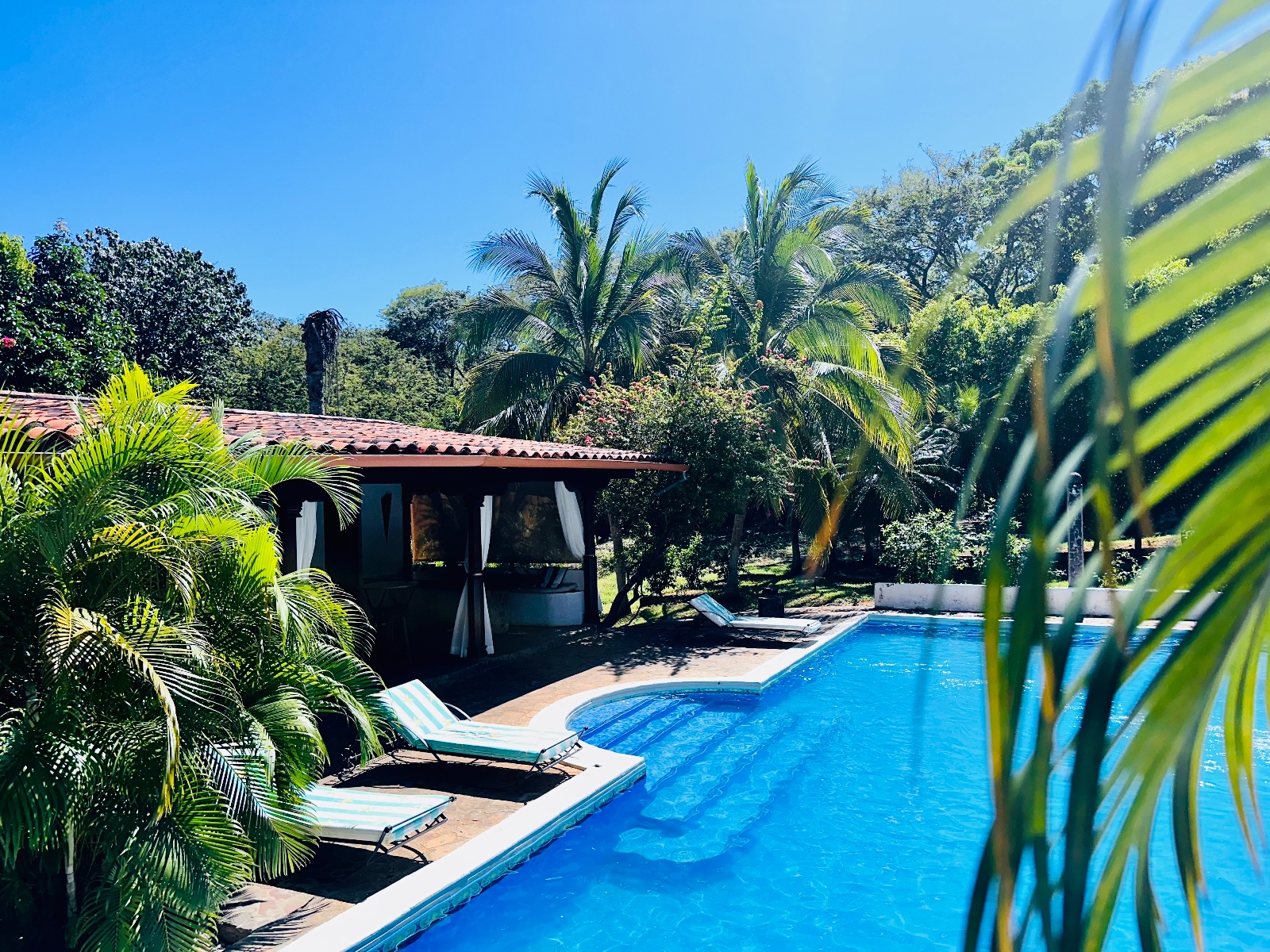 - Main house: 3 bedrooms, 3.5 bathrooms with kitchen, TV room and a charming dining room with access to the terrace. On the main floor, there is a nice pool and outdoor lounging area.