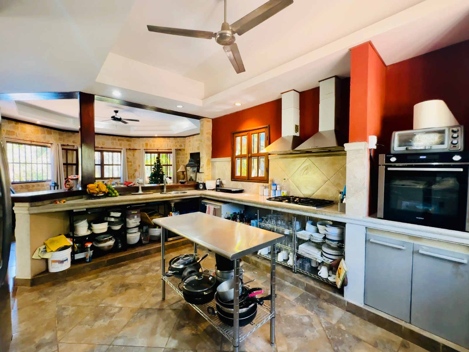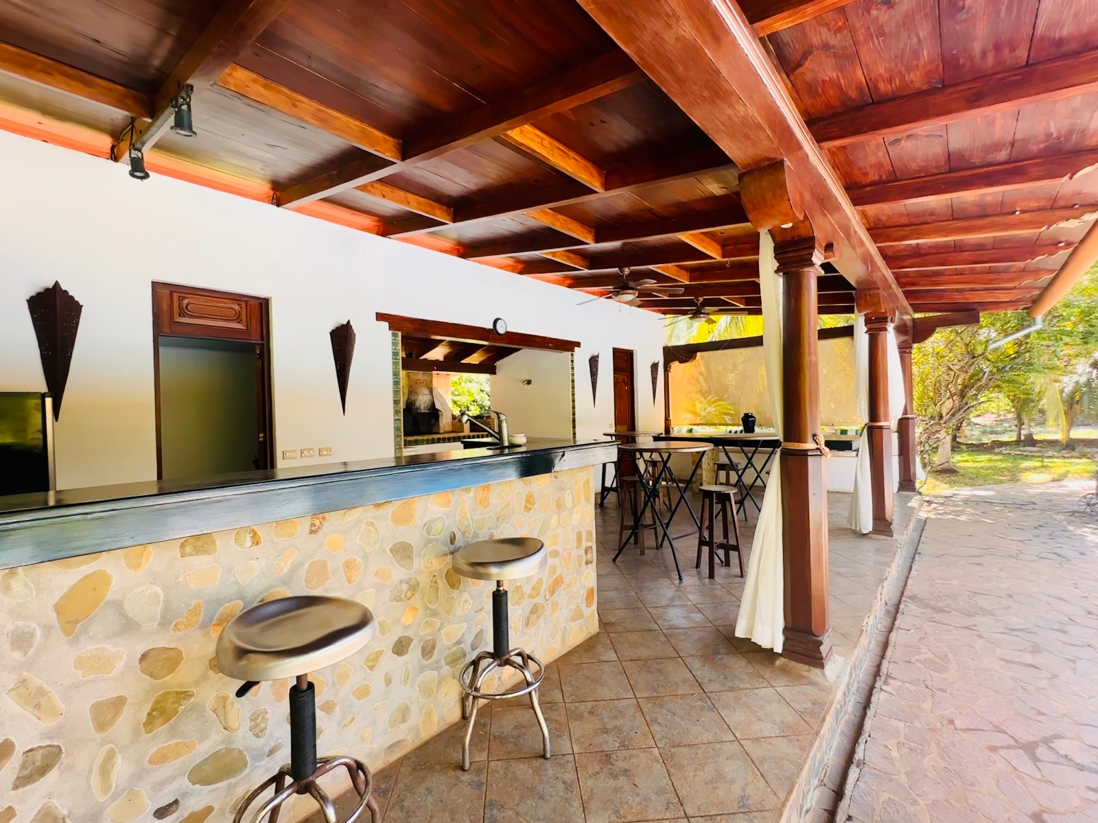 - Ranch with clay oven, bar area, kitchen and half bathroom.